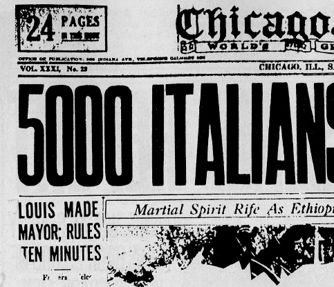 While most Euro-Amerikans were primarily indifferent to events in Afrika, the Italian-Amerikan community was solidly behind Mussolini. The invasion aroused “Italian pride”, making the mostly poor Italian immigrants happy that “their” homeland was conquering Third-World nations just like the other European Powers. The anti-Afrikan, pro-imperialist sentiment of the Italian-Amerikan community was spontaneously strong, although also heavily reinforced—at neighborhood movie theaters the newsreels showed Italian Bishops using holy water to bless Mussolini’s tanks going off to battle. The Vatican itself had said that Italian colonization was bringing “civilization” to Afrikans.(14)