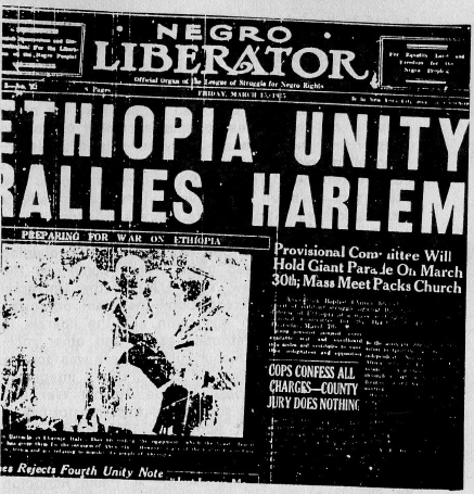The 1935-1936 mass movement around the Italian invasion of Ethiopia was a turning point for New Afrikan rebellion in the 1930s. In October 1935 Italian imperialism sent its armies into Ethiopia, the last remaining independent Afrikan nation. Italian imperialism had sought to add Ethiopia to its other Afrikan colonies, Libya, Eritrea and Italian Somalia. Even before the fighting began it was clear that Italy was going to invade; the Ethiopian government of Emperor Haile Selassie had begun war mobilization and had sent out a call for international aid. The response and excitement were world-wide. In the continental U.S. Empire, the New Afrikan Nation was caught up in the cause of Ethiopia. It was to them in 1935 what the Vietnam war was to us in 1968. The militant solidarity movement was spearheaded by the nationalists, with everyone from the Baptist churches and the NAACP to the Garveyites and Communists joining together.