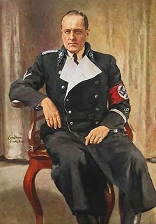 In the early 1930s, Darré was a powerful ideological force within the developing Party. Both in public writings & in inner party struggles, Darré fought for ever more racist thinking as the determinant of all policy. That he considered the 1930 Nazi Party as not dedicated enough to Master Race politics gives you an idea of exactly how racist Darré was. While Hitler was a fantasy Aryan, Darré was a hard-core “Nordicist,” a believer in an imaginary Nordic superior race of tall blond-haired men that inhabited Scandinavia and North Germany. In their view, the short dark-haired South Germans and Austrians (such as one Corporal Adolf Hitler) were at best of mixed blood and not true members of the Master Race. Darré never abandoned these views but did soft-pedal them once he joined the South German–based Nazis.